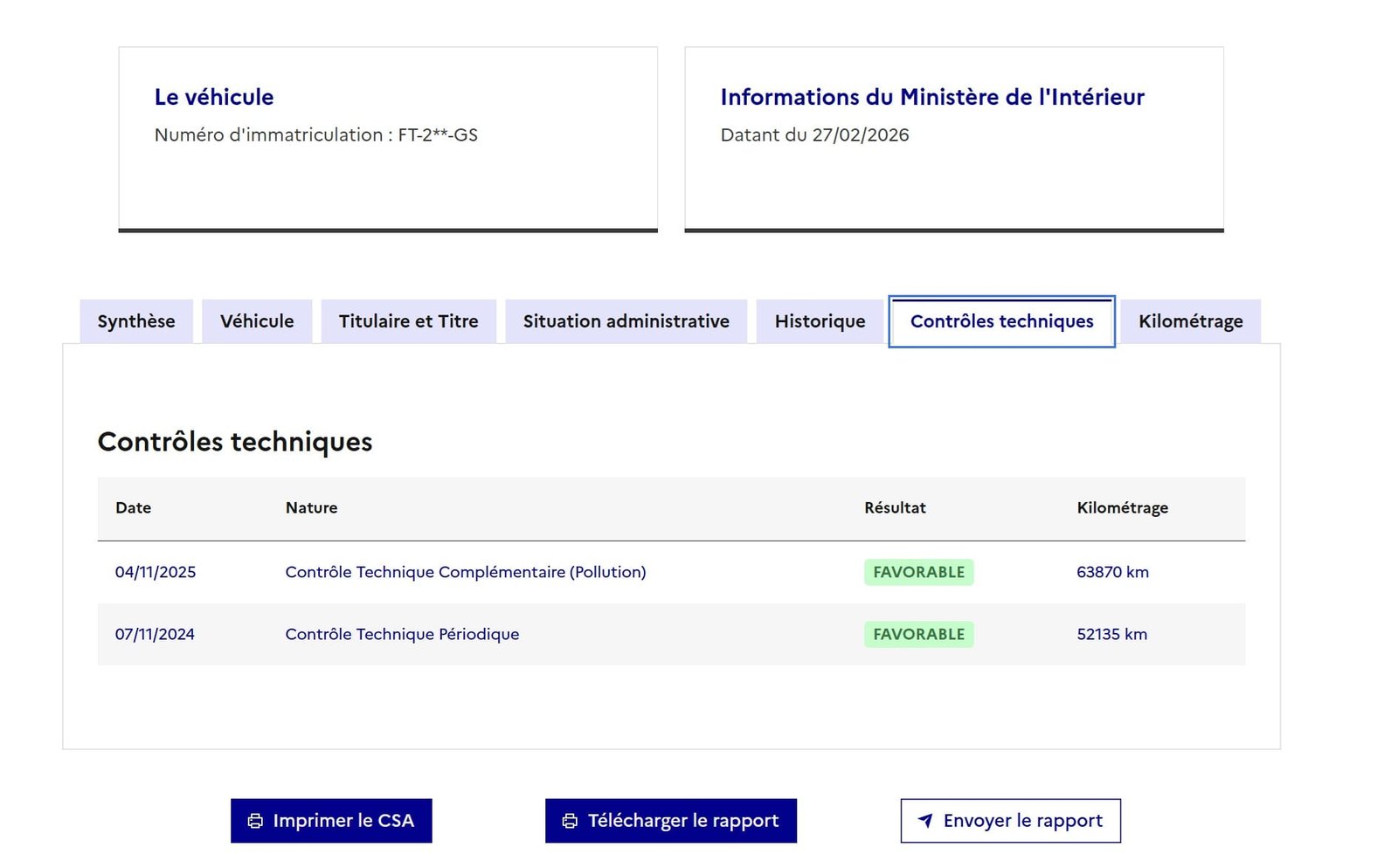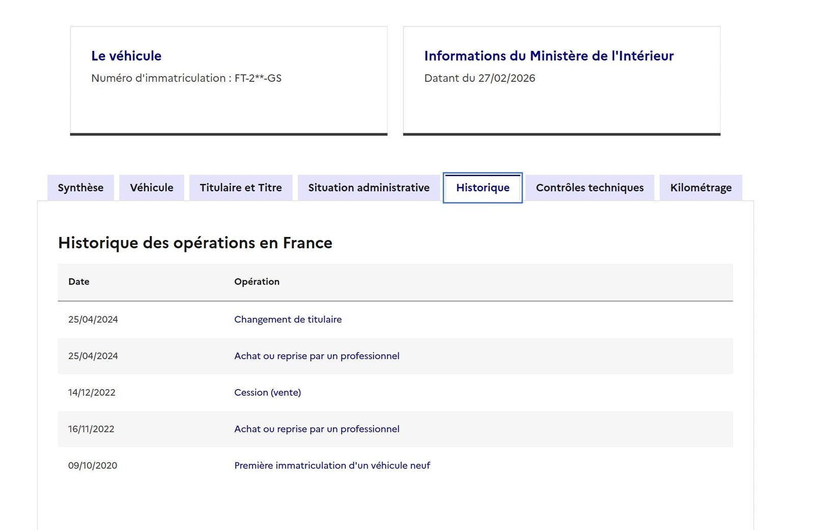 Historique du véhicule